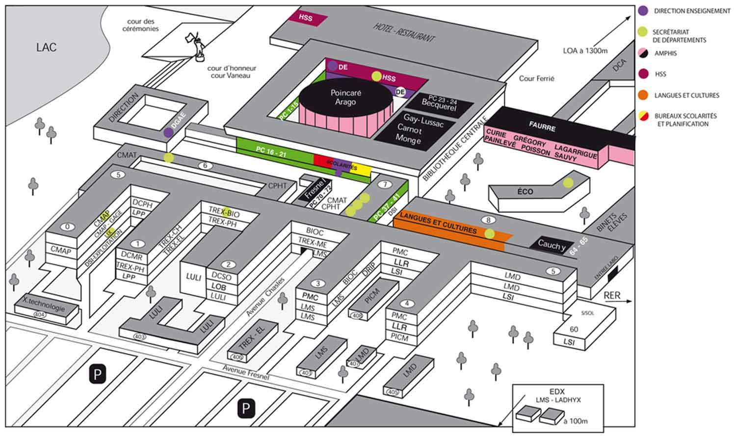 We recommend participants to take the RER B subway to Massy-Palaiseau and take a bus to the École polytechnique from there, as explained below. If you do not object to climbing a small hill, then you may exit the RER B at Lozère/École polytechnique instead of Massy-Palaiseau, and reach the campus in about 15 minutes by feet.