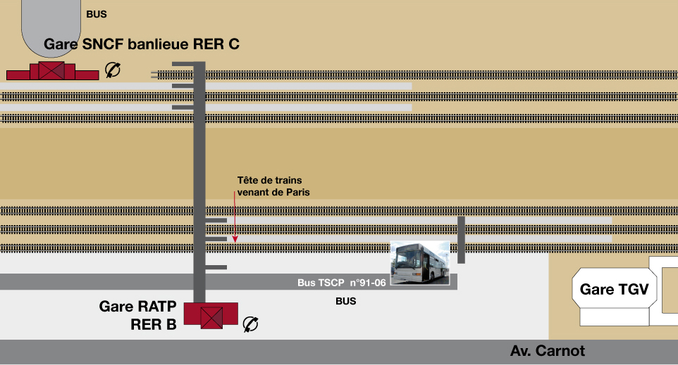 Attention, the bus transfer is not free, except with a Carte Orange zone 4. You will need tickets T+, which can be bought in the Metro and RER stations, or you will be able to buy tickets directly in the bus.